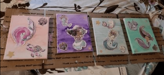 I took 3 canvases, painted them and added the decals, and then decoupaged them.